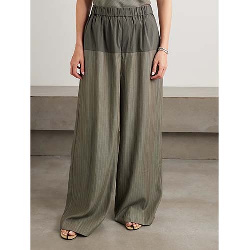 Зәйтүн жолақты ками және кең аяқты шалбарлар жиынтығы